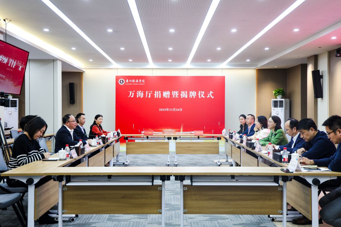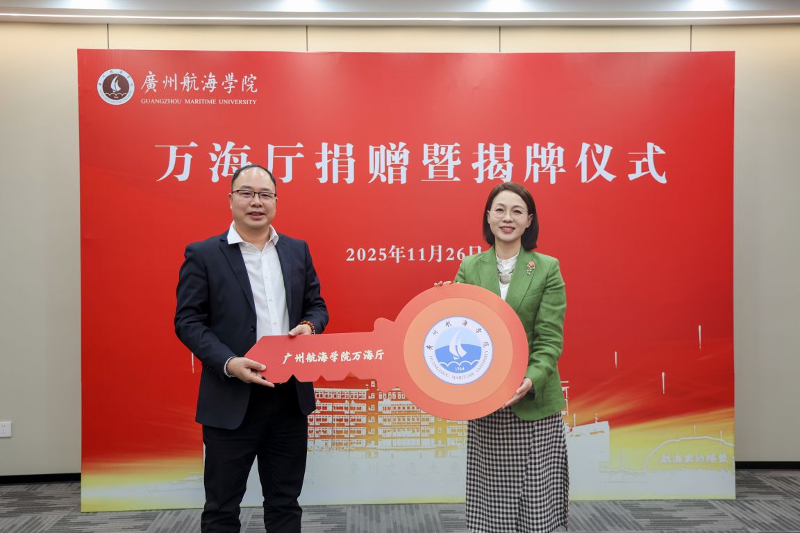 冬阳沐校园,情谊暖人心。11月26日,广州航海学院万海厅捐赠暨揭牌仪式在黄埔校区隆重举行。校党委书记陶韶菁,广东巨三集团有限公司副总裁、学校95级工业与民用建筑专业校友卢任贵、广州市林鼎装饰工程有限公司总经理、学校96级建筑装饰专业校友万桂林出席仪式,校党委副书记胡命杰主持仪式。