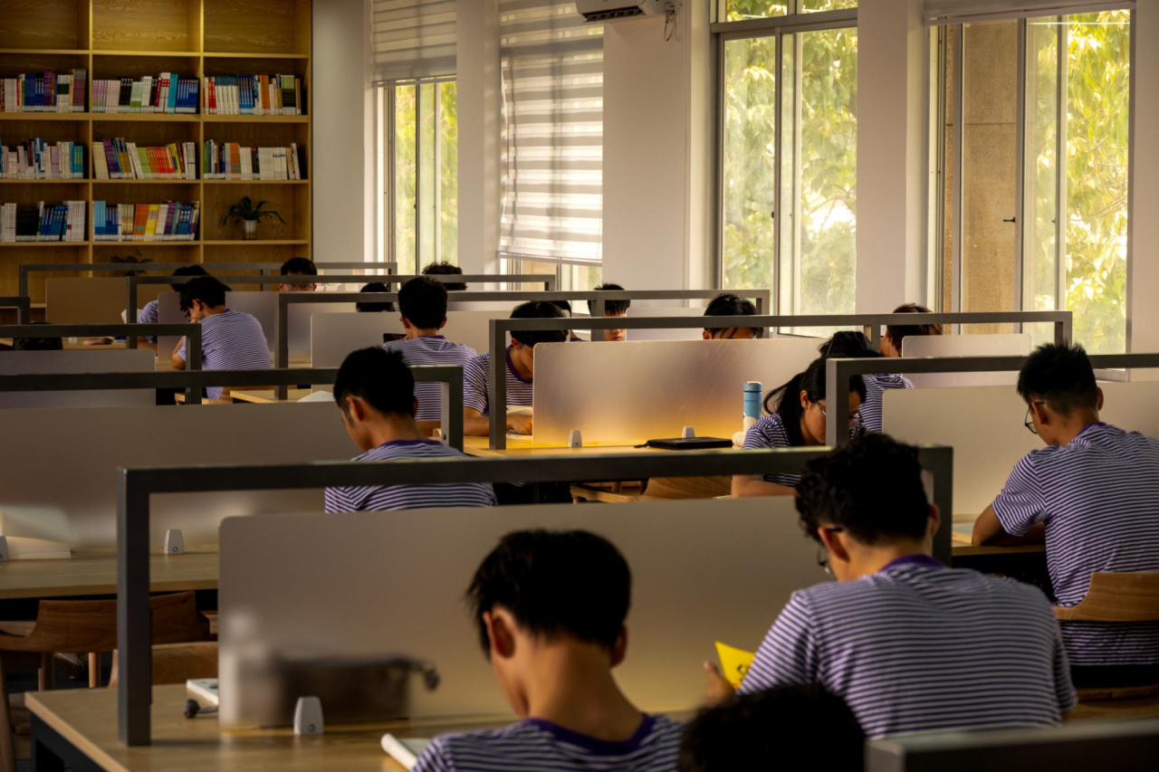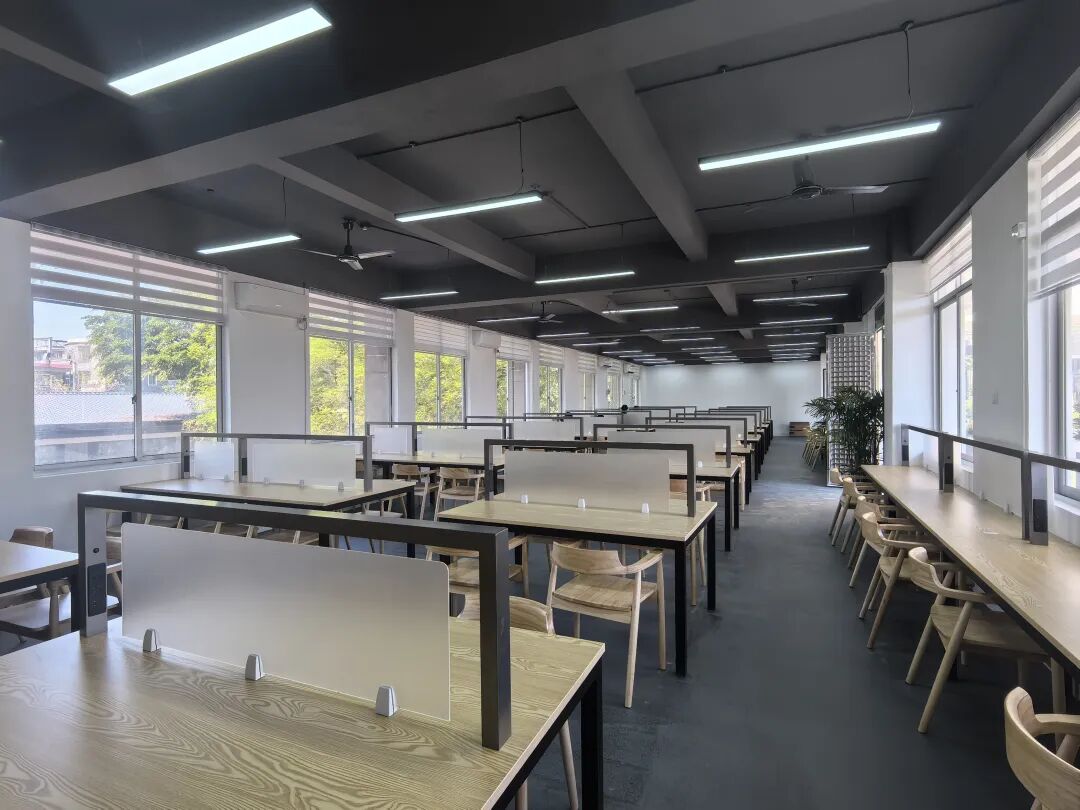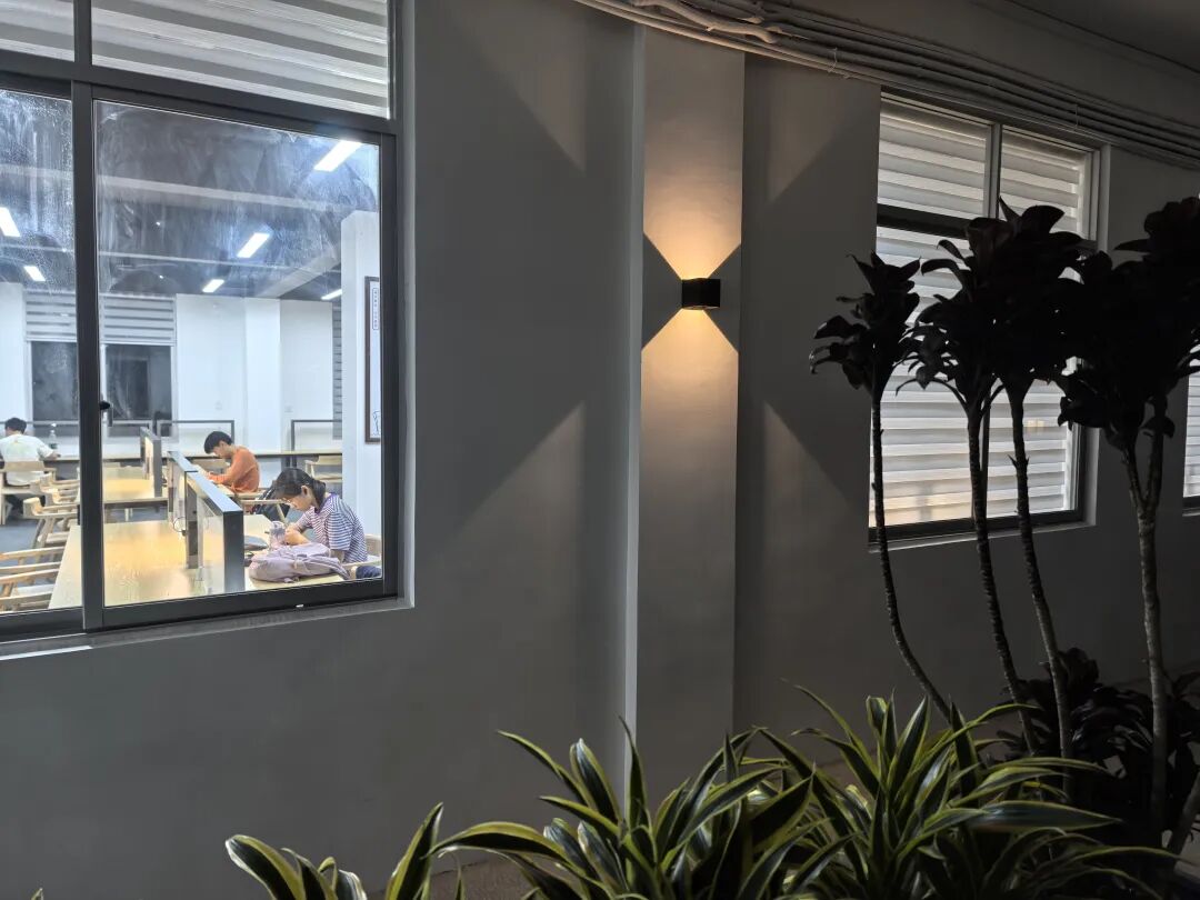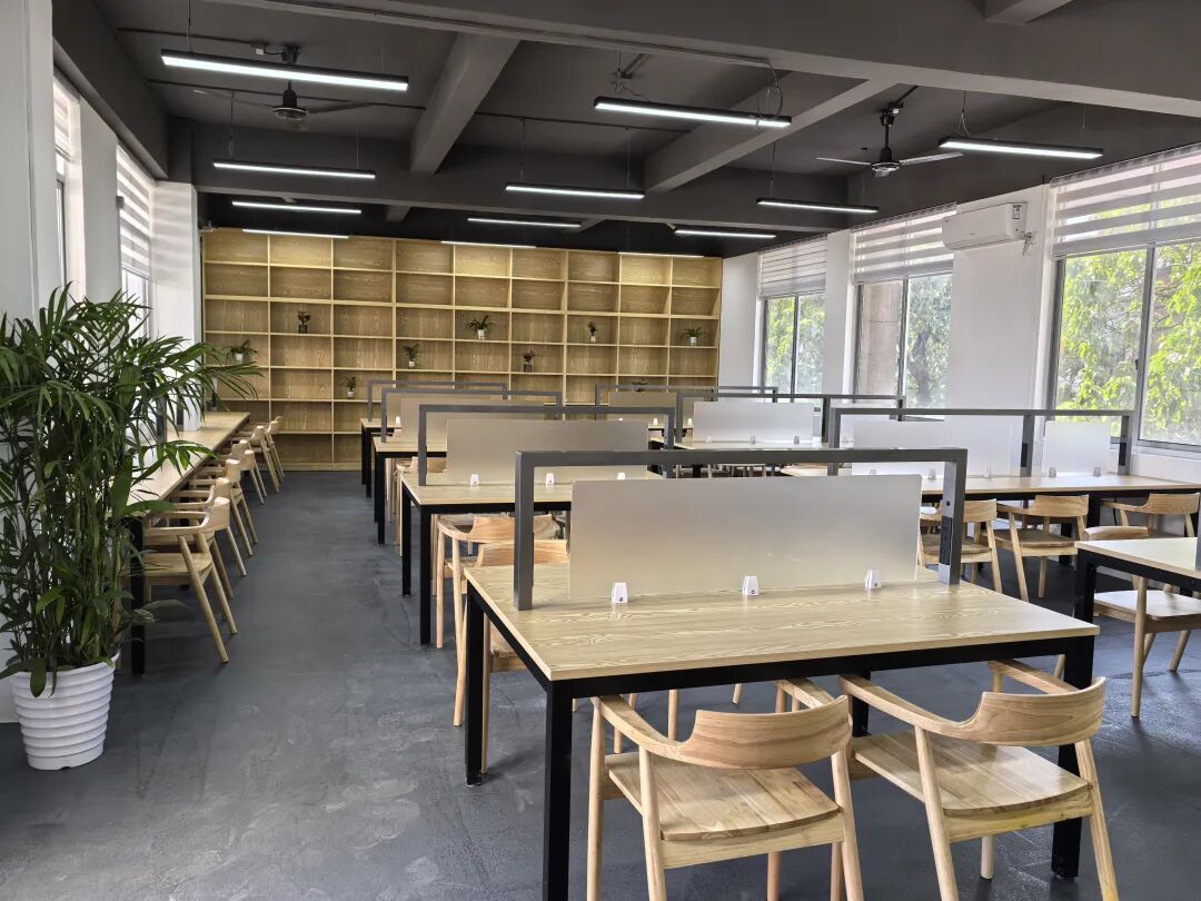 “山海阁”由广州瑞诚办公家具有限公司捐建,由两间课室和办公室改造而成。此次改造让琶洲校区图书馆建筑面积由1500㎡扩大至2100㎡,室外园林面积增加280㎡,阅览席由原来180个增至356个,集阅读自习、交流研讨于一体,为师生提供了功能齐全、环境雅致的学习交流空间。
