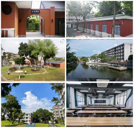 近年来,学校大力推进“雅而美”校园环境建设,聚焦环境美化与文化传承,构建“绿意与古韵共生”的校园生态。2024年9月,凤浦书院正式落成;同年10月,琶洲校区首部电梯投入使用。随后,学校持续优化琶洲校区校园景观,新增草坪花卉,精心打造“草甸书角”等休闲空间。2025年8月,学校启动学生宿舍1号楼和干训楼全面翻新,完成64间宿舍改造升级,全面改善宿舍基础设施条件。同期,实现教学楼电子班牌全覆盖、完成多间智慧教室标准化改造。2026年,由社会捐赠助力建设的“山海阁”顺利揭牌,建筑面积由1500㎡扩大至2100㎡,室外园林面积增加280㎡。如今的琶洲校区,书院亭阁错落有致、光影流年交织相融,生态绿意愈发浓郁,文化底蕴日益深厚,校园建设迈上新台阶。
