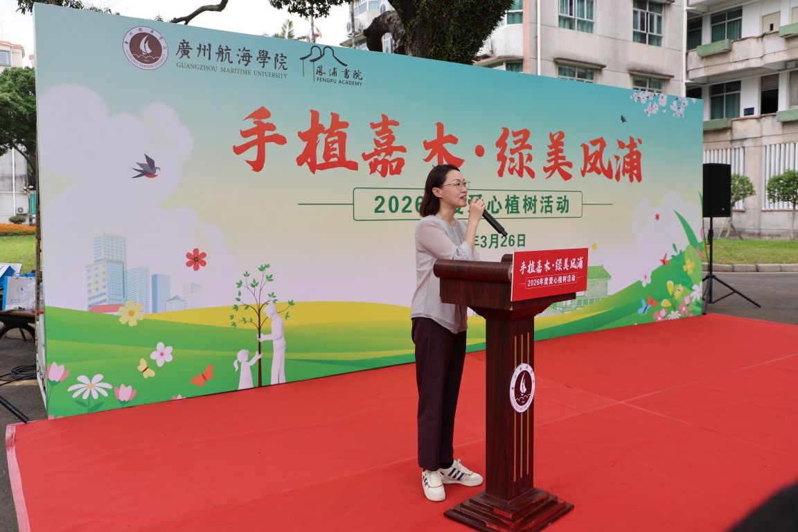 陶韶菁在讲话中深刻解读了此次植树活动的三重意义。一是心怀一份感恩,这份感恩是校友们对母校悉心栽培的诚挚感谢。在校友们的鼎力支持下,学校持续推进植树造林、美化校园环境、不断增厚“绿色家底”。植下的南方嘉木,既承载校友们的深厚情谊,更象征广航春光为序、向新向远的美好未来。二是诠释一份惦念,这份惦念让校友们在母校拥有了一片专属花海。甲子校庆年学校启动“绿美广航”生态建设,携手共植六十春树。去年学校获赠800株风铃木,以第二波行动践行“绿水青山就是金山银山”的生态理念。今年在琶洲校区植树造林,建设绿美凤浦,让这片花海不断延伸,让琶洲校区成为五湖四海广航校友心中的惦念与乡愁。三是承载一份期许,这份期许印证了十年树木,百年树人的教育初心。逐梦前行的广航院学子,如今天植下的树苗充满生机,终将长成参天大树,扛起时代重任;又如琶洲校园的暖阳,凝聚能量,以青春之力奔赴山海。