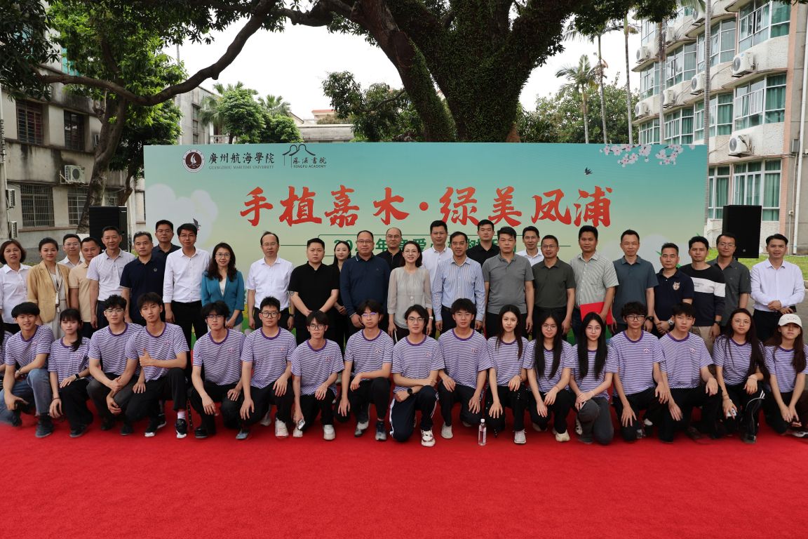 学校党政办、宣传部、学工部、教务部、基建后勤部、校友部、琶洲校区办、图书馆、交通学院、经贸学院等相关部门负责同志、琶洲校区全体辅导员及学生代表参与植树活动。
