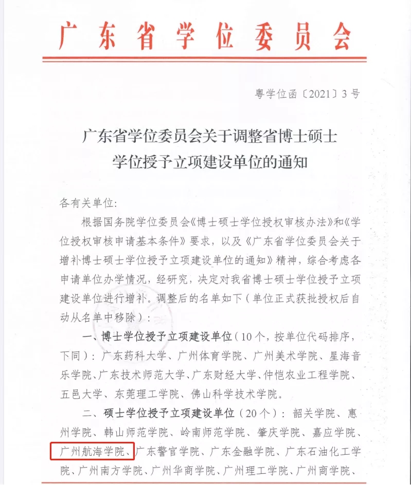 5月25日,广东省学位委员会公布了《广东省学位委员会关于调整省博士硕士学位授予立项建设单位的通知》(粤学位函〔2021〕3号),确定我校为广东省硕士学位授予立项建设单位。