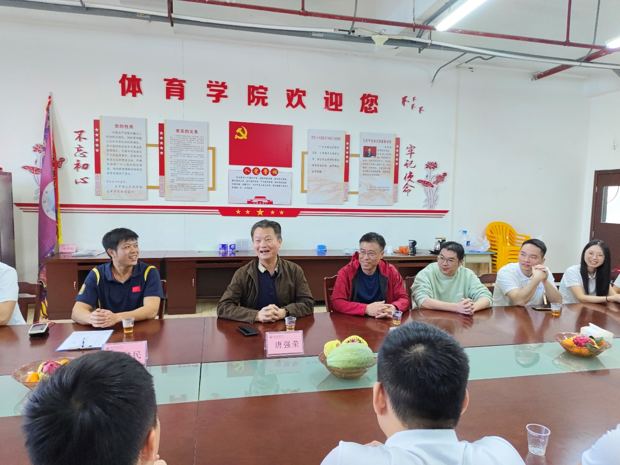 体育学院党政办公室主任陈国韬在交流会上发言,表示看到校友如今都是各行各业的优秀人才,感到自豪和骄傲。称赞各位校友展现出来的青春活力和蓬勃朝气,祝愿大家在继续在自己的工作岗位上发光发热。